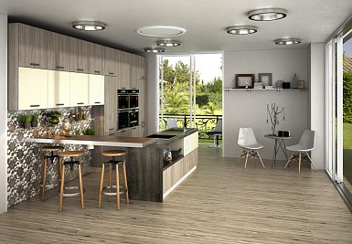 Правильное освещение сделает привлекательной даже самую скромную кухню. С помощью светильников можно выделить открытые полки, рабочую и обеденную зону. Для минималистичного интерьера подойдут лаконичные споты. Пространство в стиле лофт можно обыграть лампами на подвесах. Классический дизайн потребует нарядную люстру.