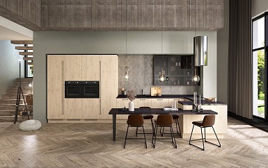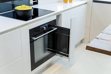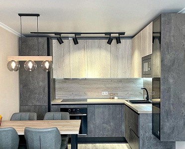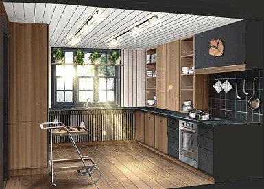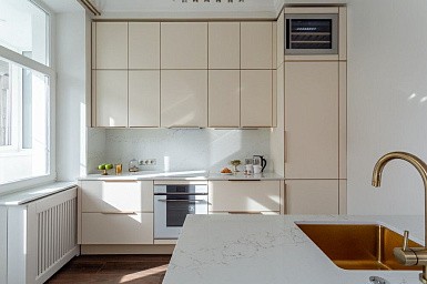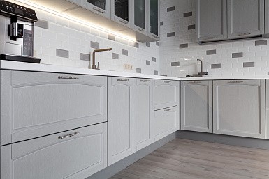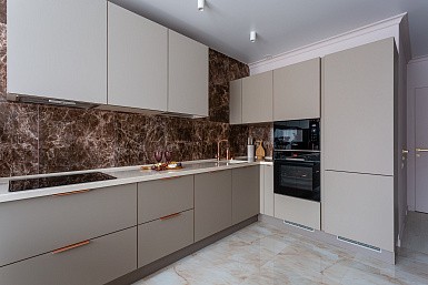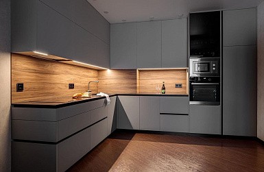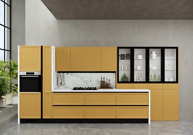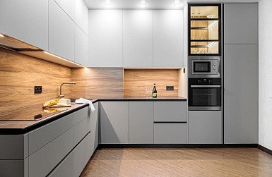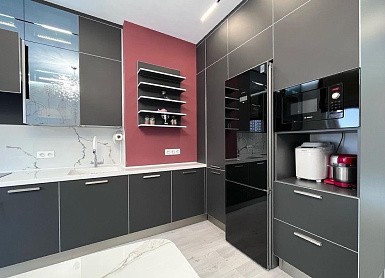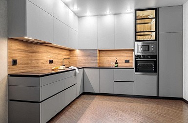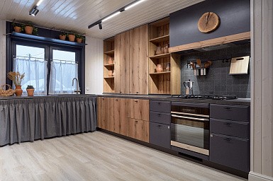 Если стены кухни не позволяют установить стандартный комплект мебели, рекомендуем заказать кухню по индивидуальным размерам. В этом случае дизайн-проект будет реализован с учетом особенностей помещения. Например, ниши будут использованы для установки полок и бытовой техники.