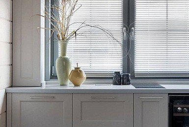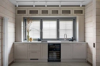 Пространство под подоконником нередко используется для установки дополнительного шкафчика. В небольших квартирах, где не так много места для хранения такой подход особенно актуален. На полках под окном можно хранить крупы, консервы, специи и другие продукты с большим сроком годности.