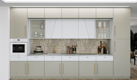 Бежевые кухни – идеальный вариант для получения красивого гарнитура. Пастельные оттенки добавляют пространству света и простора. При этом могут быть использованы тона топленого молока, кофе с молоком или светлого дерева.