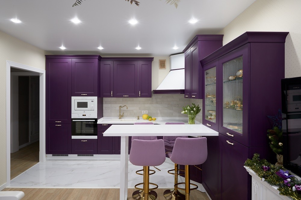 С первого взгляда видно, что классические интерьеры – родная стихия для «Эрики». Величественные шкафы верхнего яруса здесь увенчаны элегантными карнизами, массивная трапециевидная вытяжка имеет стильный бандаж, а на фасадах из МДФ присутствуют изящные ручки и прямоугольная фрезеровка. Фасады, к слову, имеют «дышащее» покрытие – экомембрану, которая обеспечивает надёжную защиту и надолго сохраняет первозданный насыщенный цвет. Добавив ко всей этой красоте ультрасовременное техническое оснащение, мы получили не просто кухню, а восхитительный образец неоклассического стиля!