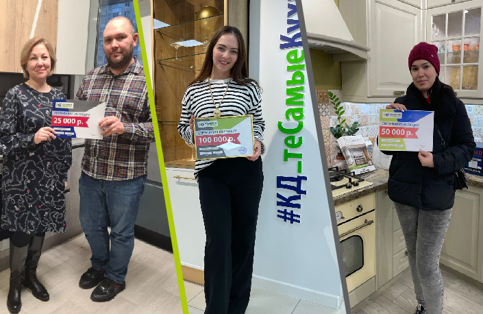Победительница акции Елена получила главный приз - сертификат на 100 тысяч рублей, который она потратит на кухню своей мечты от КD!